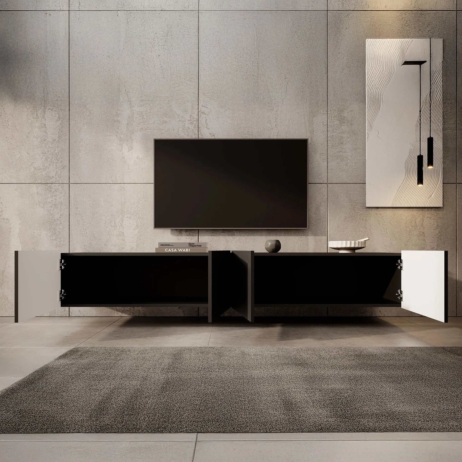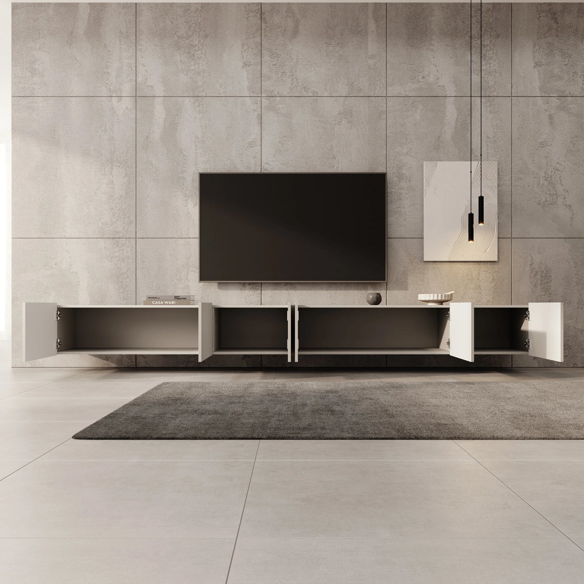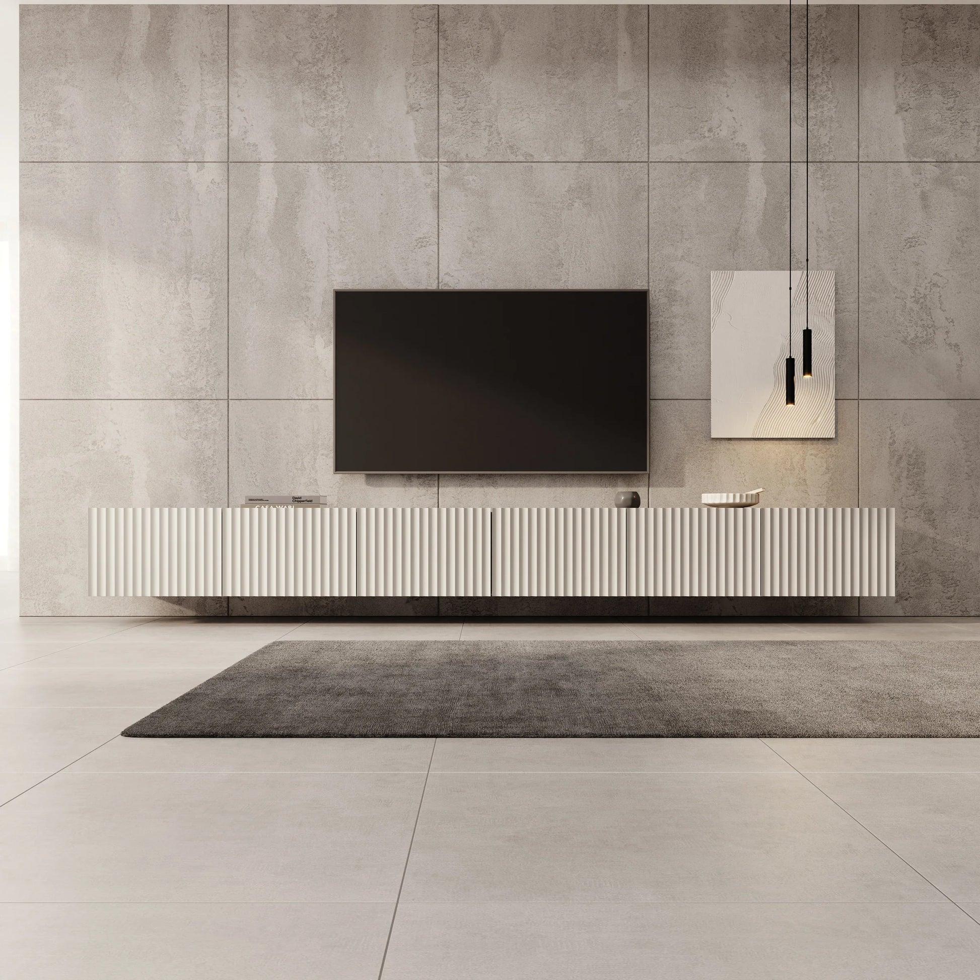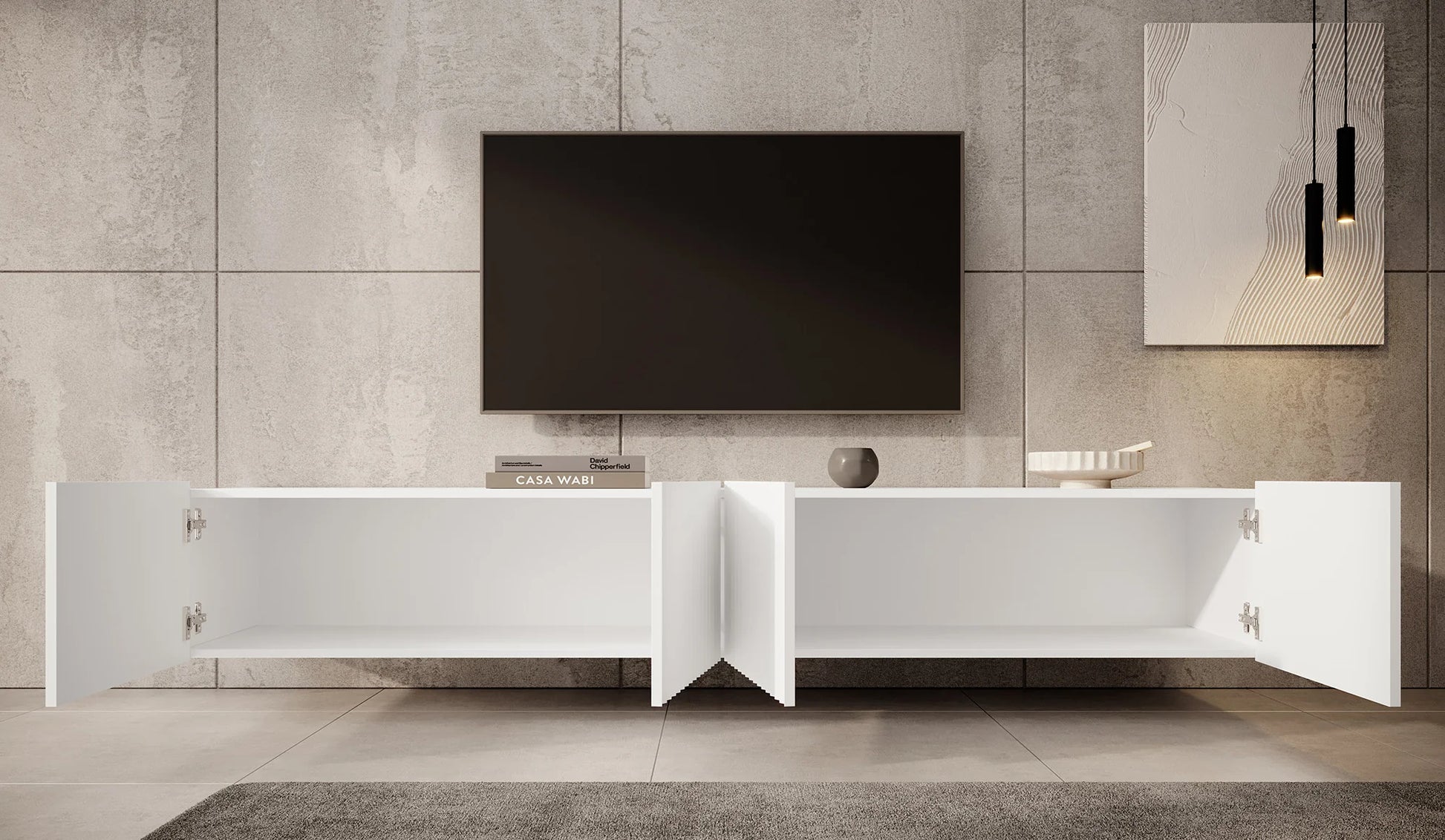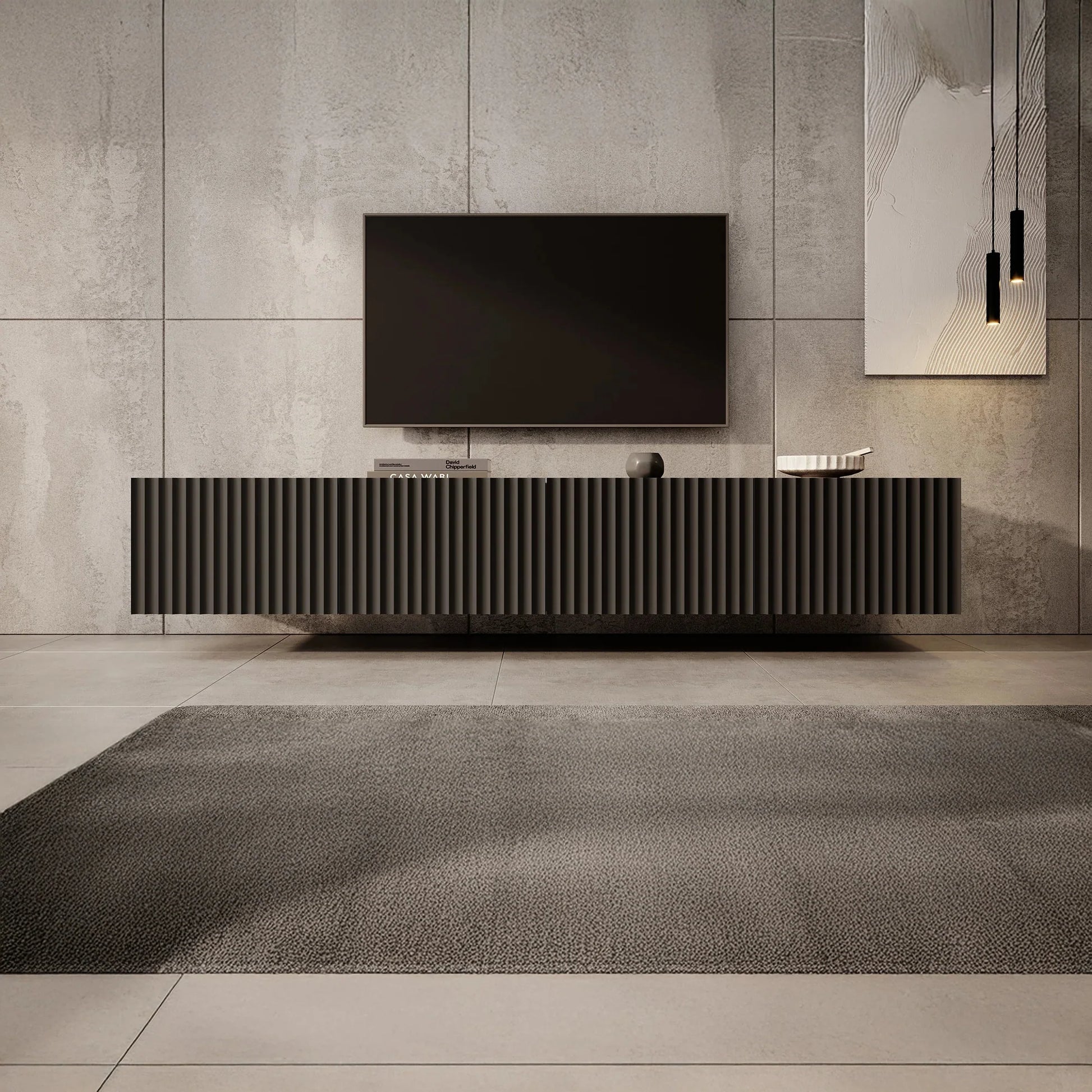Door de zwevende montage blijft de vloer vrij en houdt het geheel een strakke, overzichtelijke uitstraling. De matte afwerking combineert goed met moderne en industriële interieurs. TV-meubel Pepinos is een praktische keuze wanneer je een brede, rustige tv-opstelling wilt creëren met voldoende gesloten bergruimte.