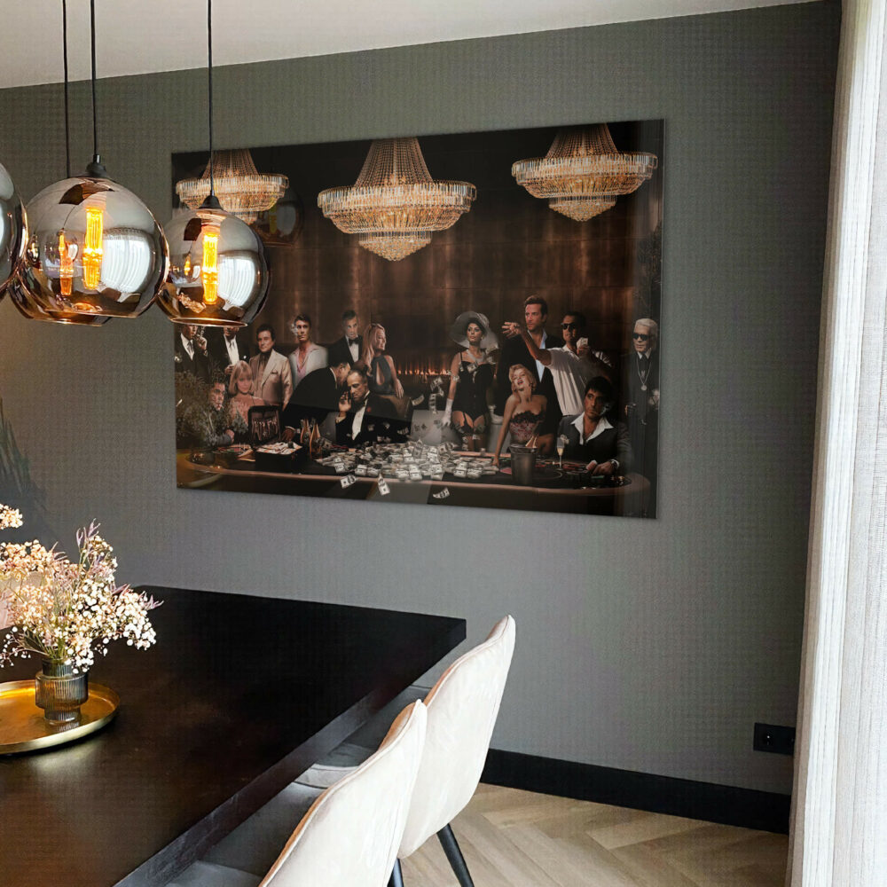 The Starlife' is een bestseller in de lifestyle collectie. Je ziet hier veel iconen van verschillende films. Van links naar rechts zie je de volgende iconen: 1) Random, 2) Henry Hill (Goodfellas), 3) Jimmy Conway (Goodfellas), 4) Elvira Hancock (Scarface), 5) Tommy DeVito (Goodfellas), 6) Manny Ribera (Scarface), 7) Random person, 8) Random person (the Godfather), 9) Naomi Lapaglia (Wolf of Wallstreet), 10) Don Vito Corleone (the Godfather), 11) Random lady, 12) Eddie Morra (Limitless), 13) Marilyn Monroe, 14) Jordan Belfort (Wolf of Wallstreet), 15) Tony Montana (Scarface) en 16) Karl Lagerfeld.