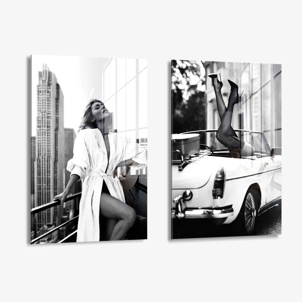 De bundel 'Vintage Ladies' is ideaal voor de echte fashion- en vintage liefhebber. Je ziet hier zwart-wit fotografie met hoge hakken in een klassieke auto in New York.