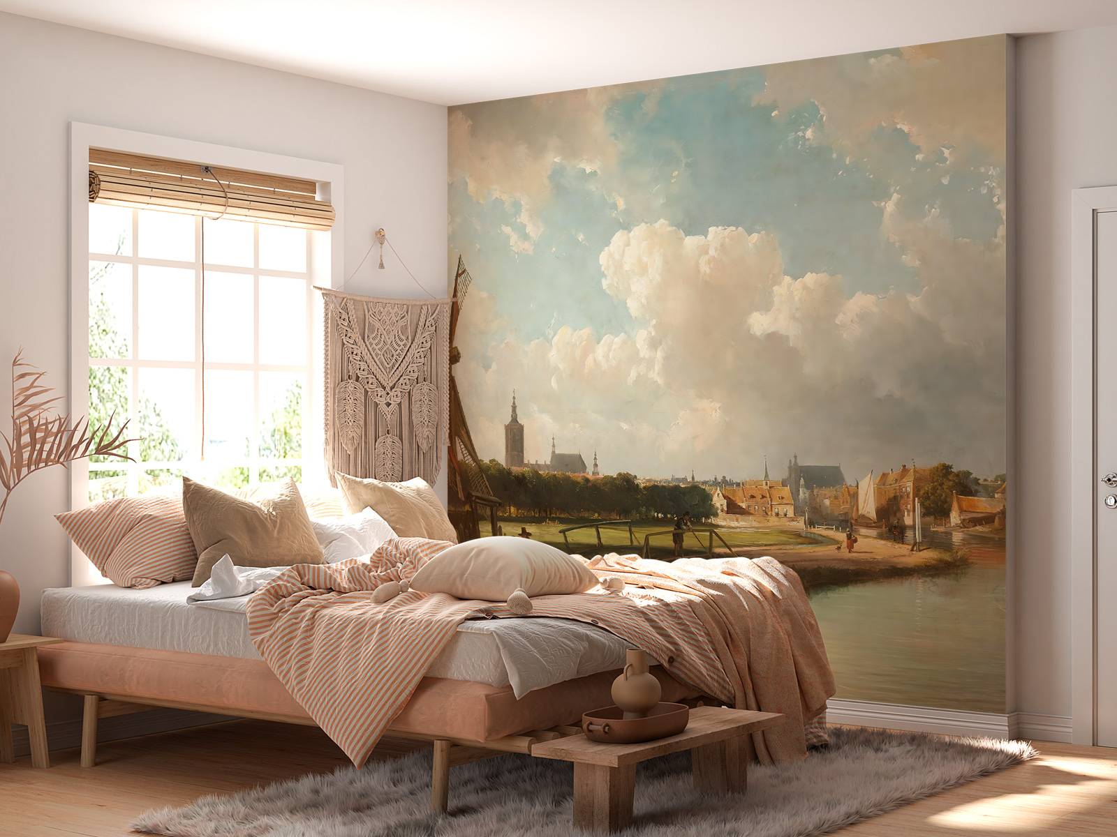 Fotobehang - Gezicht op Den Haag vanaf de Delftse vaart in de zeventiende eeuw