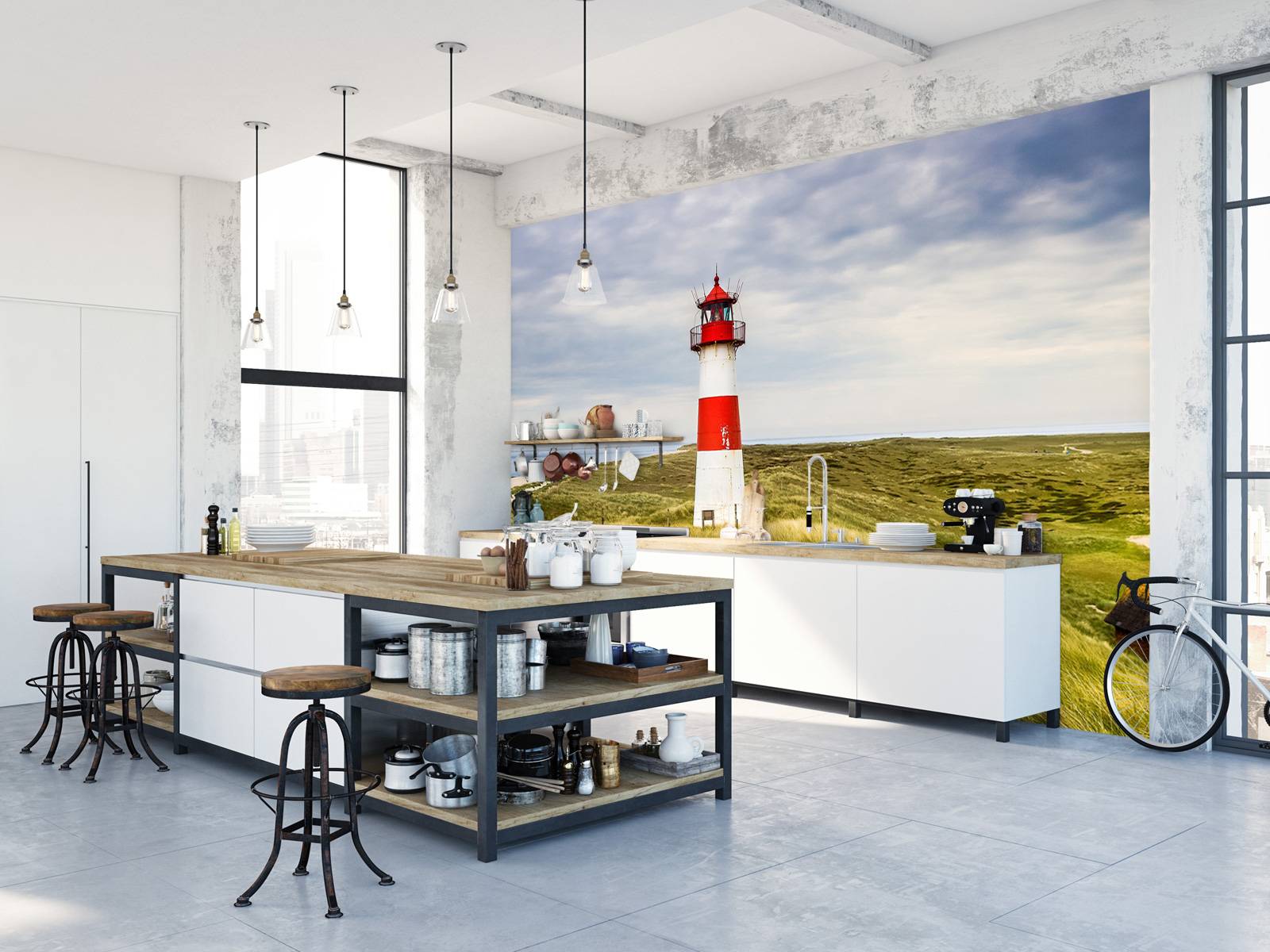 Fotobehang - Vuurtoren in de duinen